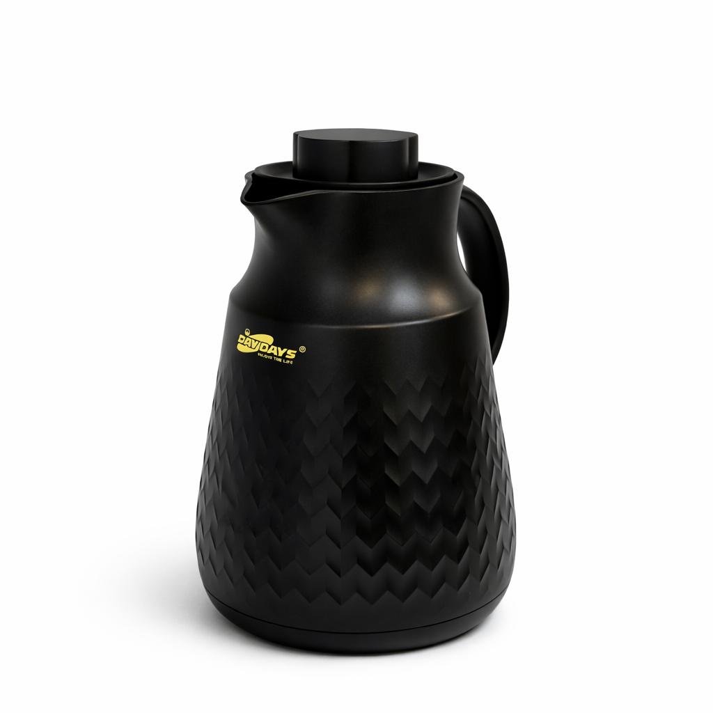 ترمس حافظ حرارة ماركة Day Days، مصنوع من بلاستيك متين من الخارج وزجاجي من الداخل، يحافظ على سخونة أو برودة المشروبات لفترة طويلة، بتصميم أنيق باللون الأسود.