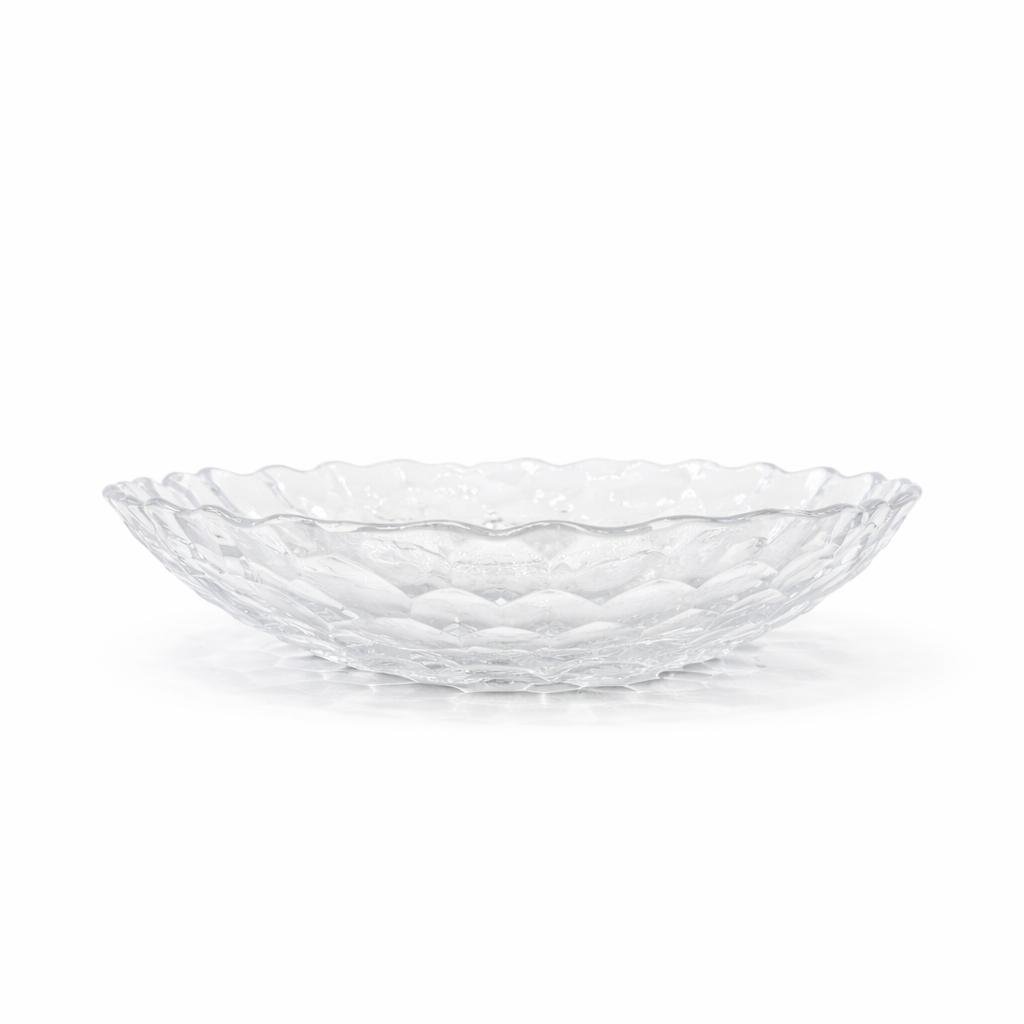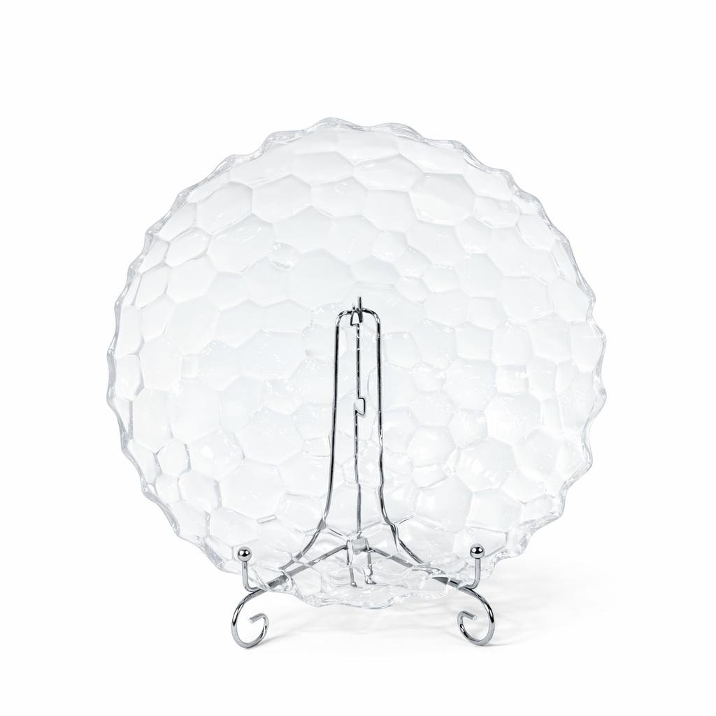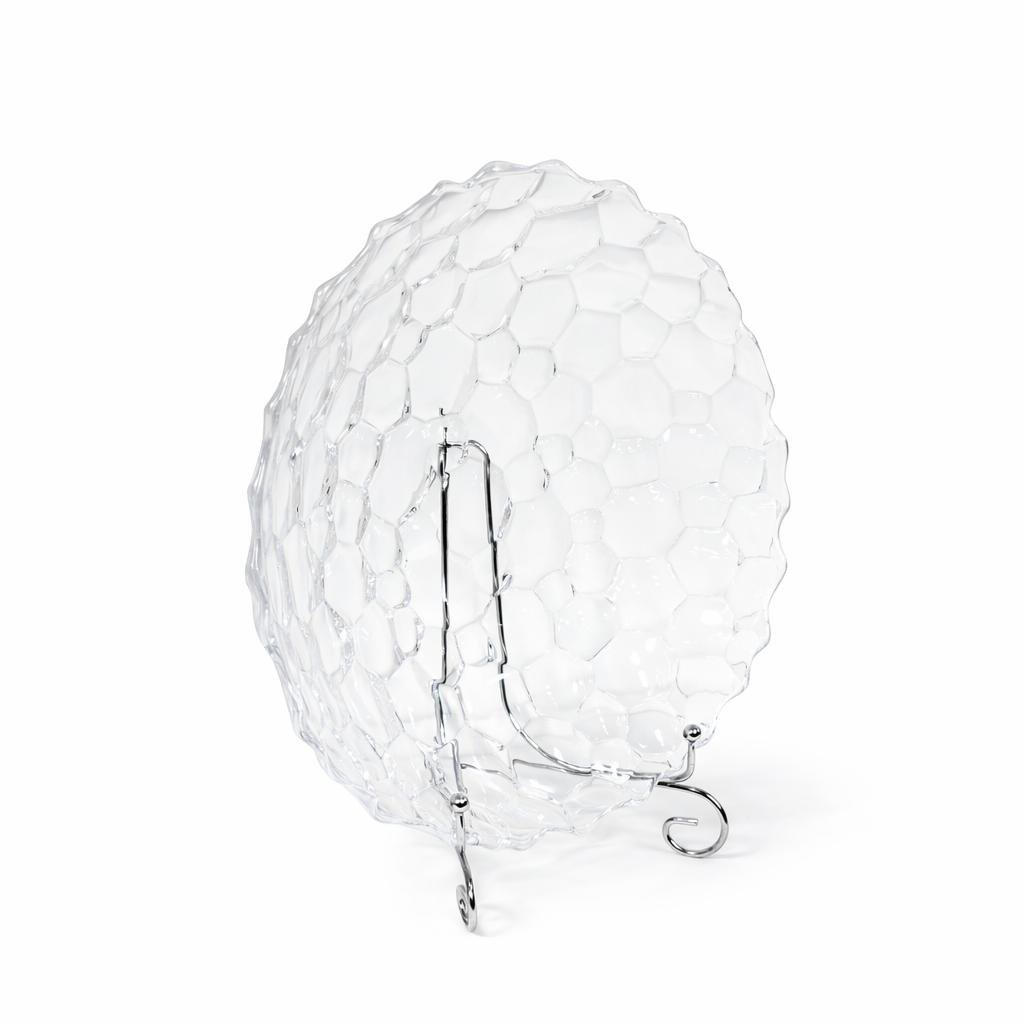 صحن تقديم مصنوع من زجاج شفاف عالي الجودة، يتميّز بتصميم هندسي فريد مستوحى من نقشة خلية النحل، يمنحه مظهرًا عصريًا وأنيقًا مع لمسة فنية ناعمة.
