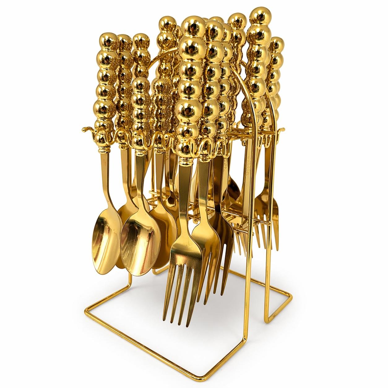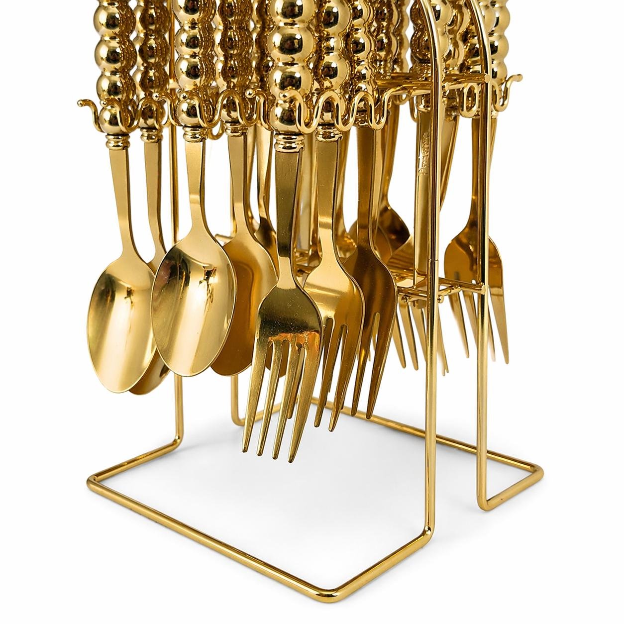 يضم 6 ملاعق + 6 شوك + 6 سكاكين + 6 ملاعق صغيرة مع ستاند عملي وأنيق لحفظها وترتيبها بسهولة.